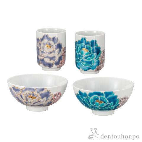 睦揃 青紫牡丹 ( 夫婦茶碗 夫婦湯呑 セット ご飯茶碗 湯飲み 九谷焼 結婚 出産 内祝い 引き出物 金婚式 誕生日プレゼント 還暦祝い 古希 喜寿 米寿 退職 )