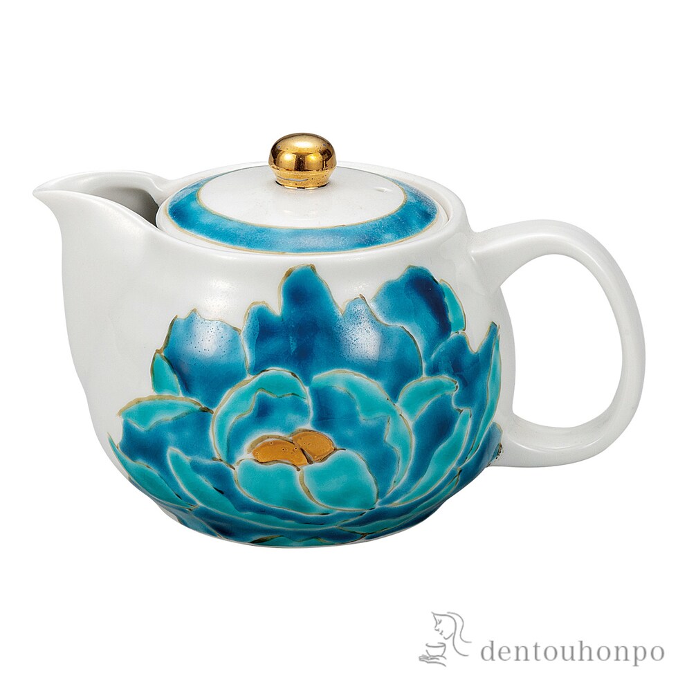 ポット急須 青牡丹 茶こし網付 ( ティーポット お茶 煎茶 日本茶 おすすめ 九谷焼 結婚 出産 内祝い 引き出物 金婚式 誕生日プレゼント 還暦祝い 古希 )