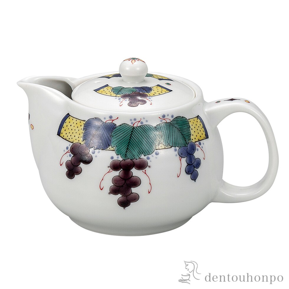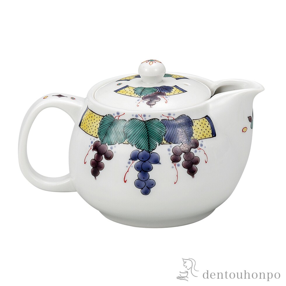 ポット急須 色絵ぶどう文 茶こし網付 ( ティーポット お茶 煎茶 日本茶 おすすめ 九谷焼 結婚 出産 内祝い 引き出物 金婚式 誕生日プレゼント 還暦祝い 古希 )