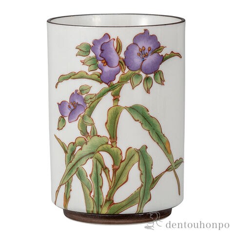 大湯呑 紫露草 ( 湯のみ ゆのみ 湯飲み カップ プレゼント 九谷焼 結婚 出産 内祝い 引き出物 金婚式 誕生日プレゼント 還暦祝い 古希 喜寿 米寿 退職 )