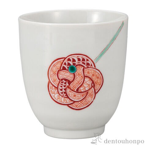 【九谷焼】 湯呑 赤絵水引