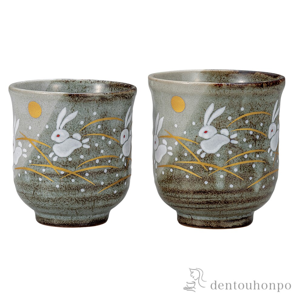 組湯呑 月うさぎ ( 湯呑み 湯のみ セット 湯飲み おすすめ 九谷焼 結婚 出産 内祝い 引き出物 金婚式 誕生日プレゼント 還暦祝い 古希 喜寿 米寿 退職 )