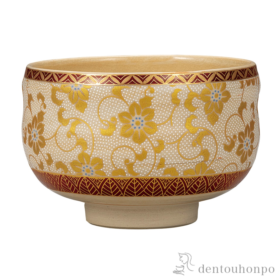 九谷焼の高級抹茶碗。白粒に美しく描かれた鉄仙の模様が、和の風情を引き立てます。優雅なデザインと伝統の技が融合し、一つ一つが芸術品のような存在感を放ちます。この抹茶碗でのお茶のひとときは、心を静め、深い安らぎをもたらします。茶道の時間をさらに特別なものにする逸品です。