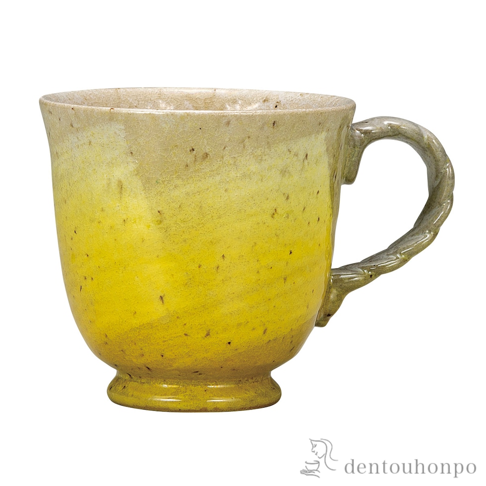 【九谷焼】 マグカップ 釉彩 黄色 竜彩