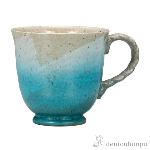 【九谷焼】 マグカップ 釉彩 水色 竜彩