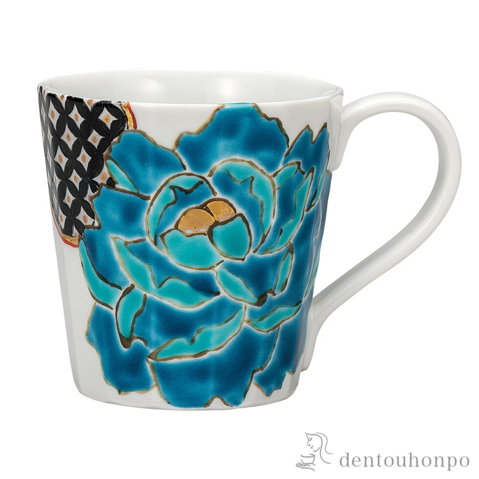 【九谷焼】 マグカップ 碧牡丹