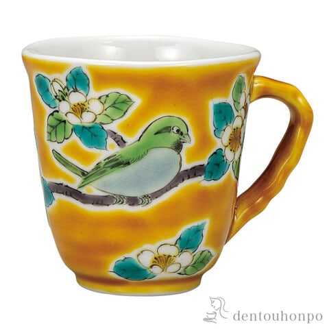 【九谷焼】 マグカップ 吉田屋山茶花鳥