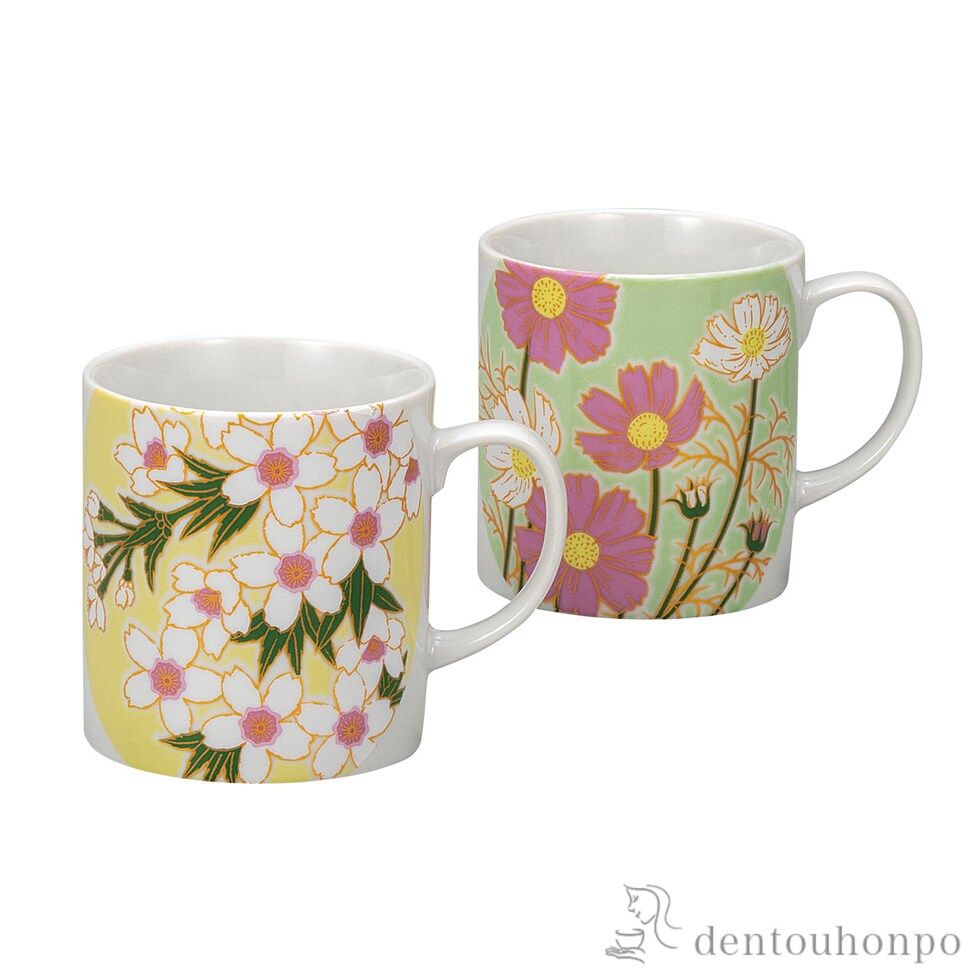 ペアマグカップ 花絵変り ( プレゼント デザイン マグ オリジナル タンブラー 九谷焼 結婚 出産 内祝い 引き出物 金婚式 誕生日プレゼント 還暦祝い )