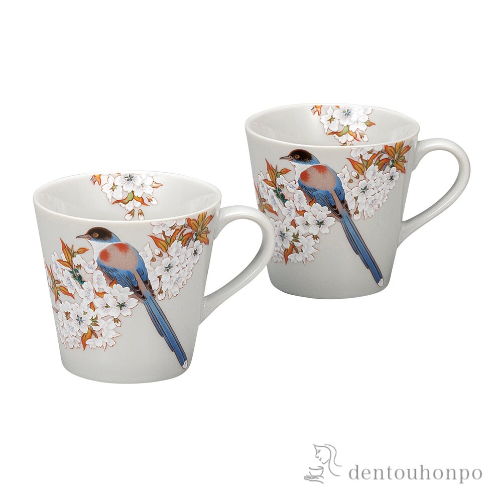 ペアマグカップ 山桜に鳥 ( プレゼント デザイン マグ オリジナル タンブラー 九谷焼 結婚 出産 内祝い 引き出物 金婚式 誕生日プレゼント 還暦祝い )