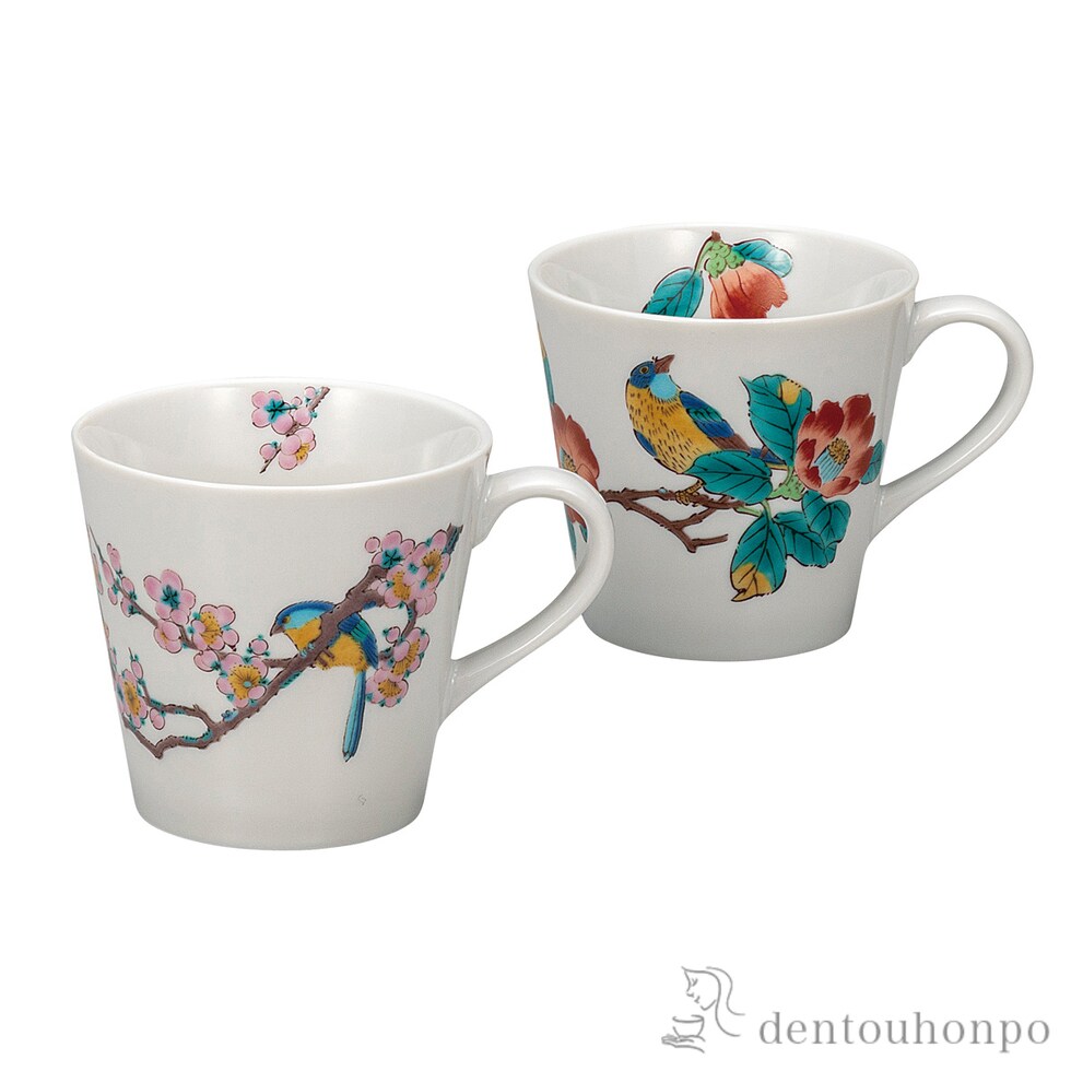 ペアマグカップ 花鳥 ( プレゼント デザイン マグ オリジナル タンブラー 九谷焼 結婚 出産 内祝い 引き出物 金婚式 誕生日プレゼント 還暦祝い 古希 喜寿 )