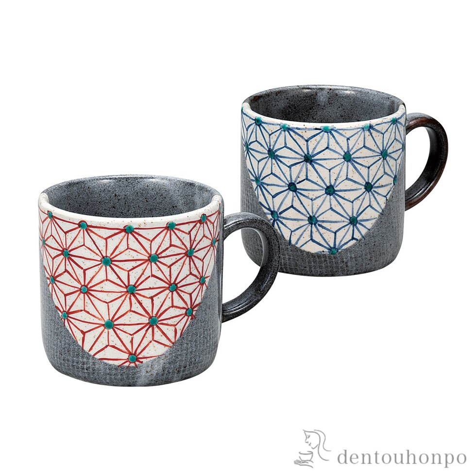 ペアマグカップ 麻文 ( プレゼント デザイン マグ オリジナル タンブラー 九谷焼 結婚 出産 内祝い 引き出物 金婚式 誕生日プレゼント 還暦祝い 古希 喜寿 )