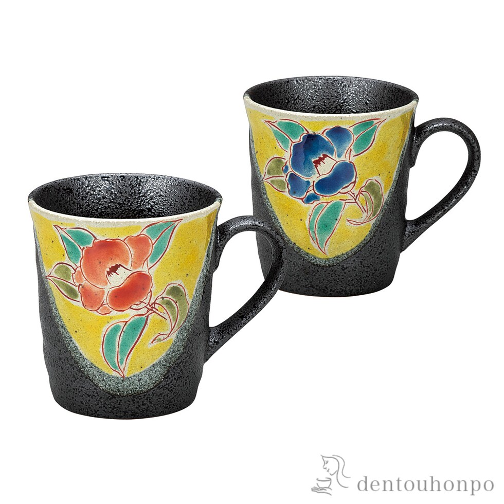 ペアマグカップ 椿文 ( プレゼント デザイン マグ オリジナル タンブラー 九谷焼 結婚 出産 内祝い 引き出物 金婚式 誕生日プレゼント 還暦祝い 古希 喜寿 )