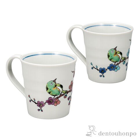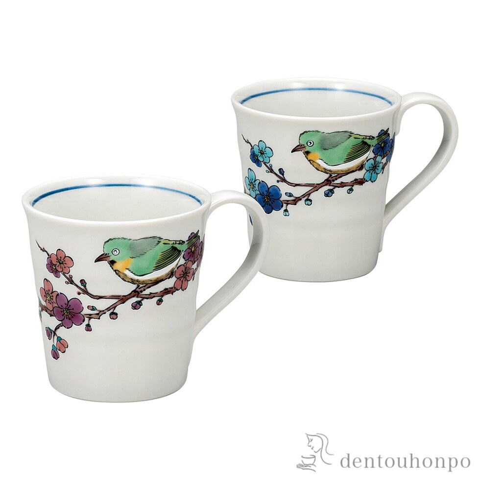 ペアマグカップ めじろに梅 ( プレゼント デザイン マグ オリジナル タンブラー 九谷焼 結婚 出産 内祝い 引き出物 金婚式 誕生日プレゼント 還暦祝い )