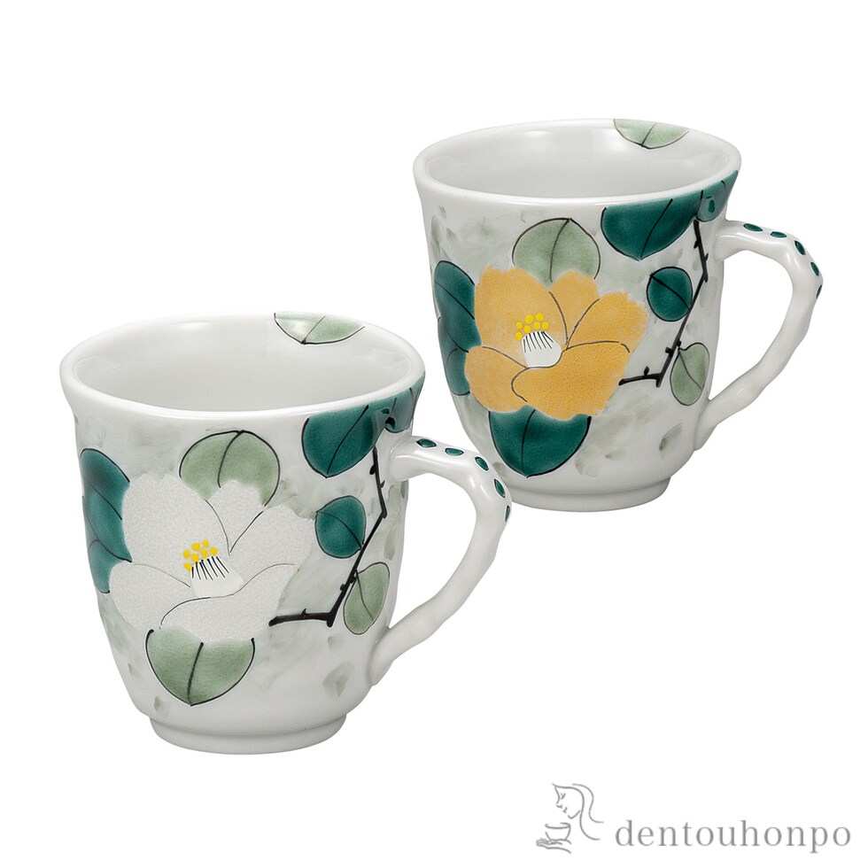 【九谷焼】 ペアマグカップ 金銀彩椿