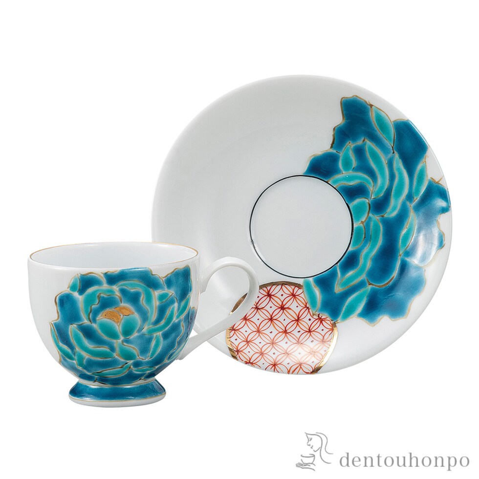 カップ&ソーサー 青牡丹 ( セット ソーサー ティーカップ 美味しい おすすめ 九谷焼 結婚 出産 内祝い 引き出物 金婚式 誕生日プレゼント 還暦祝い )
