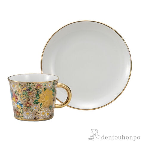カップ&ソーサー 本金花詰 ( セット ソーサー ティーカップ 美味しい おすすめ 九谷焼 結婚 出産 内祝い 引き出物 金婚式 誕生日プレゼント 還暦祝い )