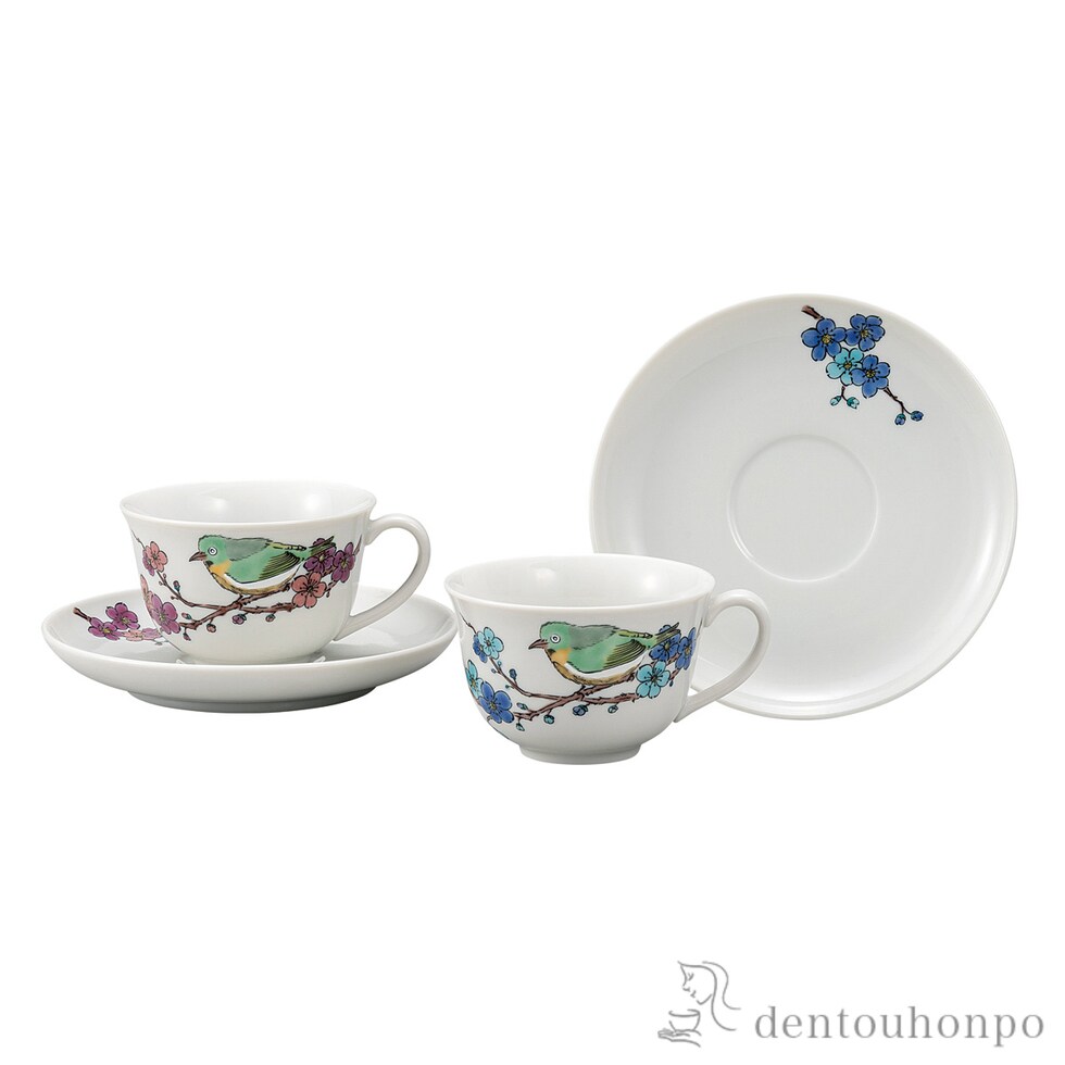 ペアコーヒー めじろに梅 ( セット ソーサー ティーカップ 美味しい おすすめ 九谷焼 結婚 出産 内祝い 引き出物 金婚式 誕生日プレゼント 還暦祝い )
