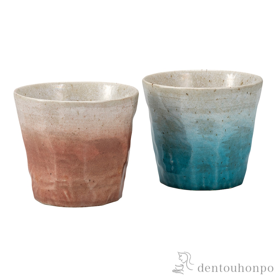 ペア焼酎カップ 釉彩 水色/オレンジ 竜彩 ( 焼酎カップ ビールカップ 保温 保冷 人気 九谷焼 結婚 出産 内祝い 引き出物 金婚式 誕生日プレゼント )