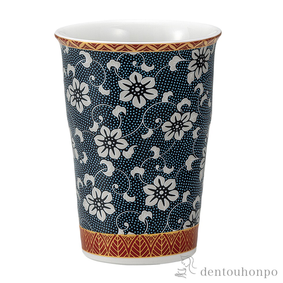 フリ-カップ 青粒鉄仙文 ( 焼酎グラス ビアカップ ビールグラス フリーカップ グラス 九谷焼 結婚 出産 内祝い 引き出物 金婚式 誕生日プレゼント 還暦祝い )