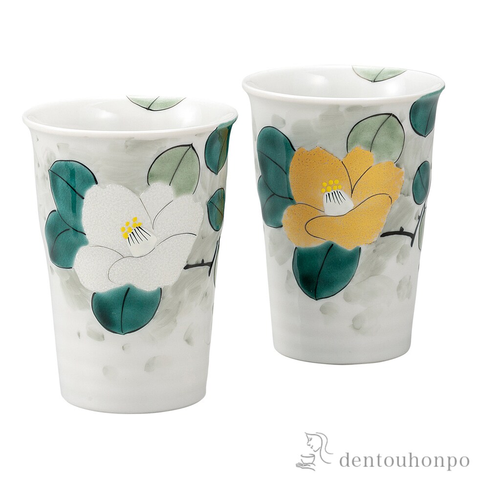 ペアフリーカップ 金銀彩椿 ( 焼酎グラス ビアカップ ビールグラス フリーカップ グラス 九谷焼 結婚 出産 内祝い 引き出物 金婚式 )
