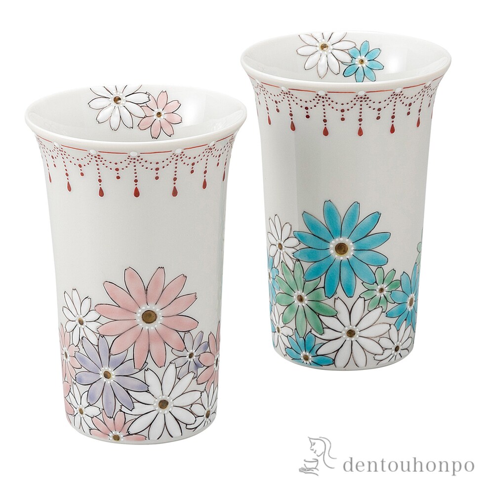 ペアフリーカップ 色絵瓔珞 ( 焼酎グラス ビアカップ ビールグラス フリーカップ グラス 九谷焼 結婚 出産 内祝い 引き出物 金婚式 )