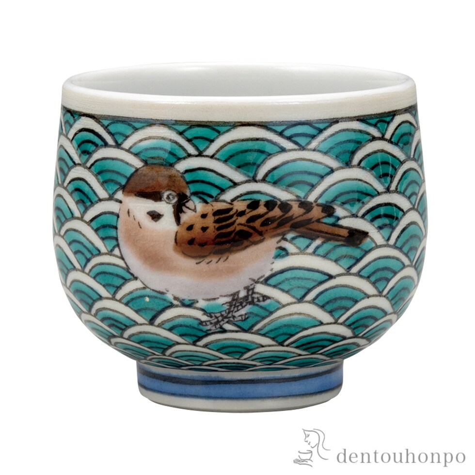 【九谷焼】 ぐい呑 波小紋雀