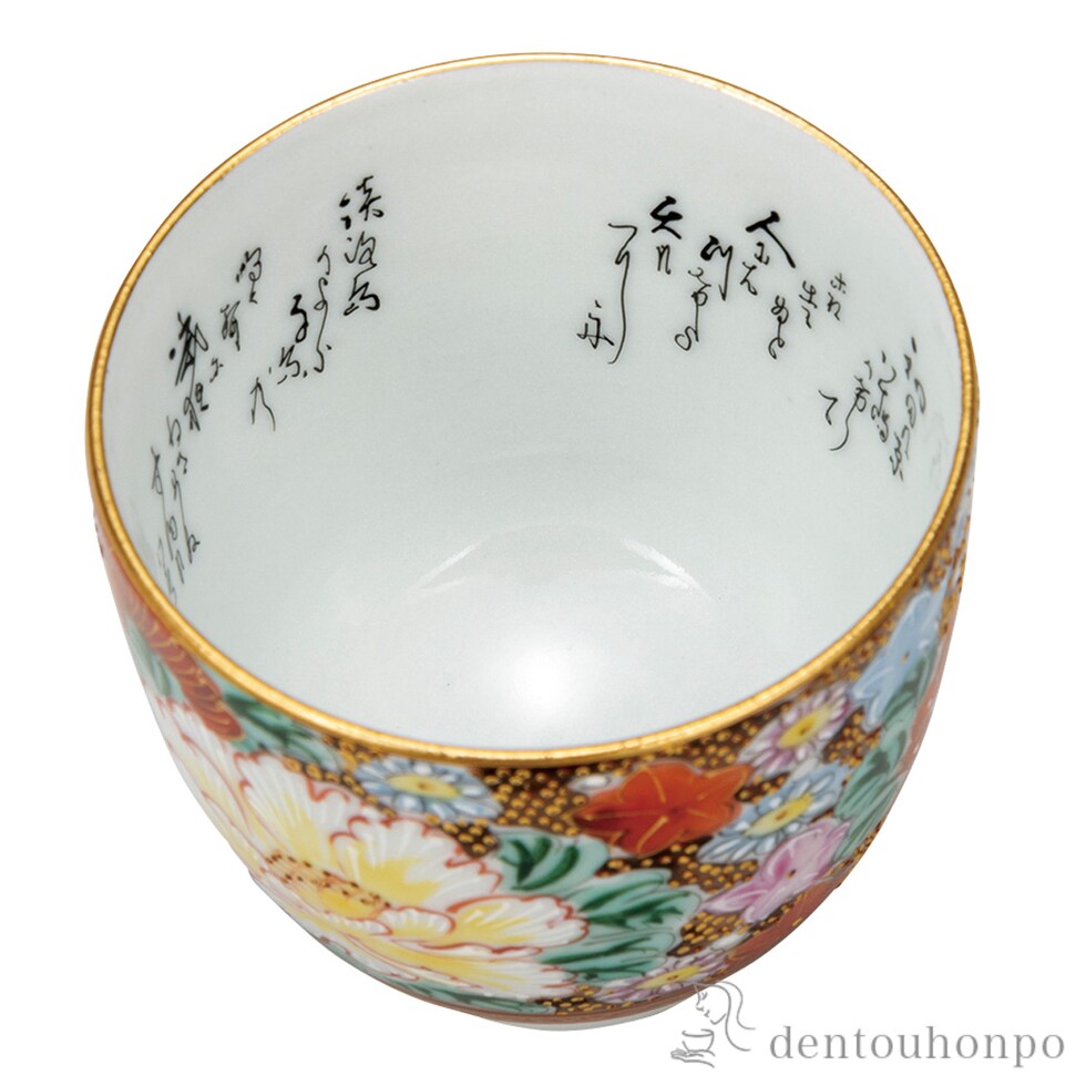 【九谷焼】 ぐい呑 本金極上花詰 細字入