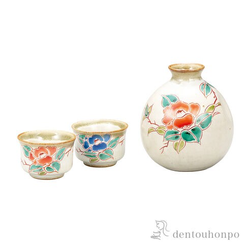 晩酌揃 椿文 ( 酒器 日本酒 冷酒 プレゼント 人気 九谷焼 結婚 出産 内祝い 引き出物 金婚式 誕生日プレゼント 還暦祝い 古希 喜寿 米寿 退職 )
