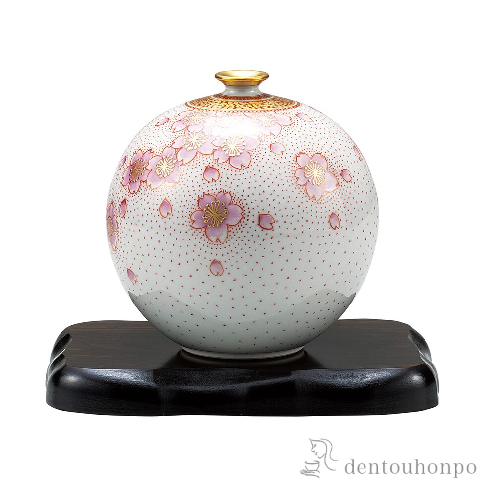 花瓶 金襴手桜 4号 台付 ( 木札名入れ有料 ガラス フラワーベース 花器 一輪挿し おすすめ 九谷焼 周年 創立 上場 竣工 開店 事務所移転 開業 )