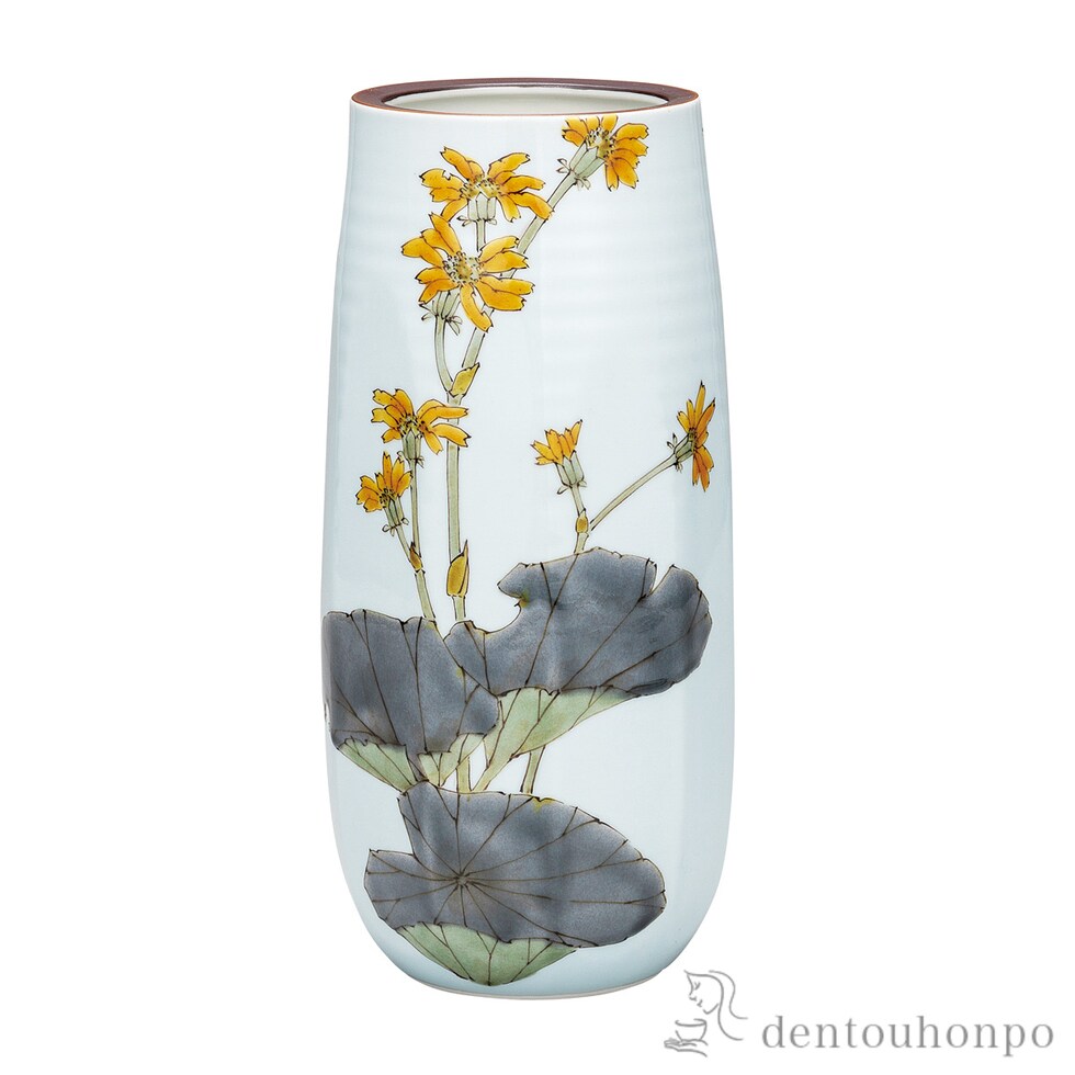 【九谷焼】 花瓶 石蕗 8.5号