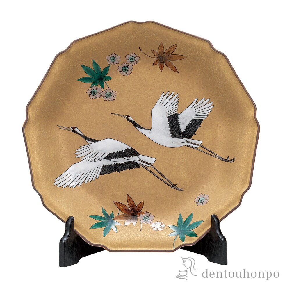 飾皿 吉祥 10号 皿立付 ( 置物 飾皿 スタンド 絵皿 贈り物 九谷焼 結婚 出産 内祝い 引き出物 金婚式 誕生日プレゼント 還暦祝い 古希 喜寿 米寿 退職 )