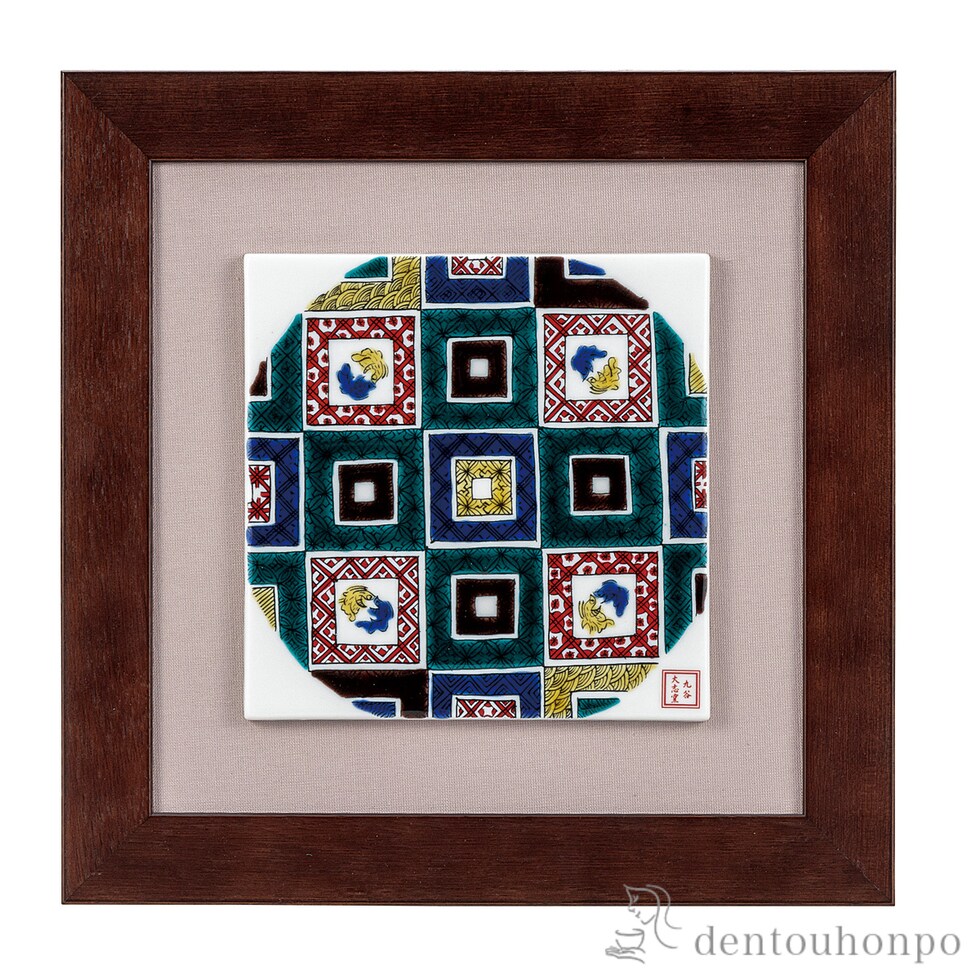 華やかながらも落ち着いた九谷焼の陶額は、その緻密な石畳の模様が見る者を魅了します。伝統工芸の技と美が見事に調和し、空間に品格を与える逸品です。和の心を感じるこの作品は、大切な方への贈り物にも最適。心穏やかなひとときをお届けします。