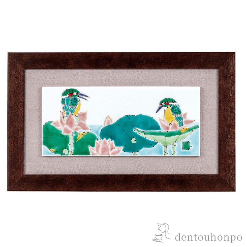 陶額 蓮に翡翠 ( 置物 額飾り 陶板 陶板画 法人 九谷焼 周年 創立 上場 竣工 開店 事務所移転 開業 プレゼント お祝い お返し お礼 令和 海外 日本 取引先 )