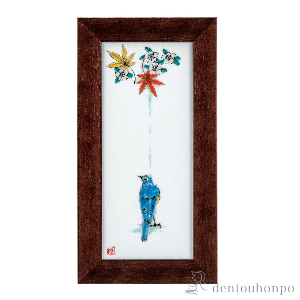 陶額 春秋ルリビタキ ( 置物 額飾り 陶板 陶板画 法人 九谷焼 周年 創立 上場 竣工 開店 事務所移転 開業 プレゼント お祝い お返し お礼 令和 海外 )
