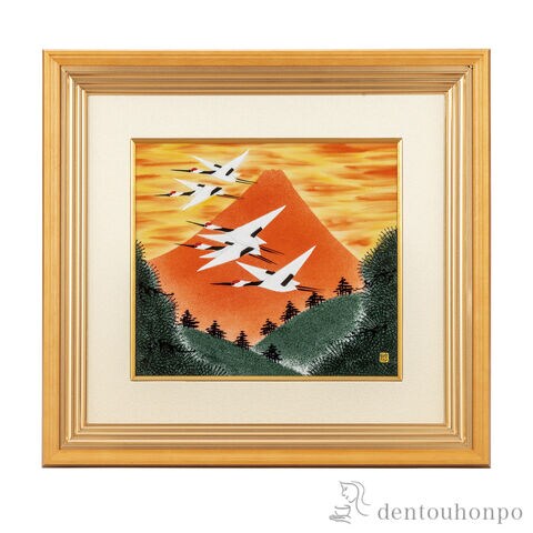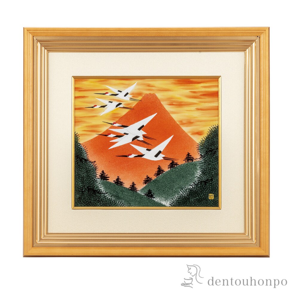 陶額 赤富士に鶴 ( 置物 額飾り 陶板 陶板画 法人 九谷焼 周年 創立 上場 竣工 開店 事務所移転 開業 プレゼント お祝い お返し お礼 令和 海外 日本 取引先 )