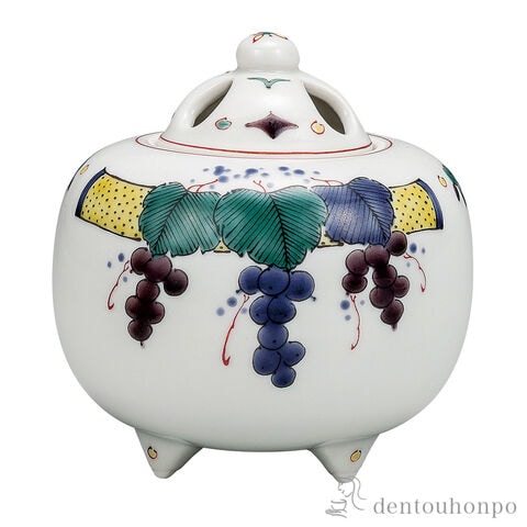 香炉 色絵ぶどう文 3.2号 ( お香 線香 リラックス 仏具 人気 九谷焼 周年 創立 上場 竣工 上場 竣工 開店 事務所移転 開業 プレゼント お祝い お返し お礼 )