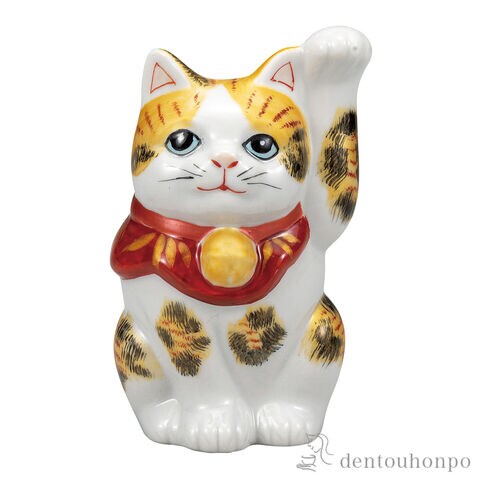 【九谷焼】 招き猫 金彩三毛 3.3号