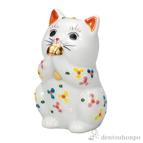 お祈り猫 小花 2.7号 ( 置物 幸運 開運 まねきねこ 風水 九谷焼 結婚 出産 内祝い 引き出物 金婚式 誕生日プレゼント 還暦祝い 古希 喜寿 米寿 退職 )