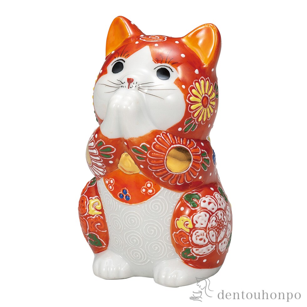 お祈り猫 赤盛 2.7号 ( 置物 幸運 開運 まねきねこ 風水 九谷焼 結婚 出産 内祝い 引き出物 金婚式 誕生日プレゼント 還暦祝い 古希 喜寿 米寿 退職 )
