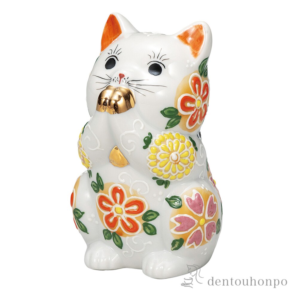 お祈り猫 花はな 3.8号 ( 置物 幸運 開運 まねきねこ 風水 九谷焼 結婚 出産 内祝い 引き出物 金婚式 誕生日プレゼント 還暦祝い 古希 喜寿 米寿 退職 )