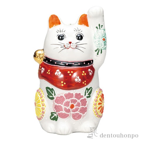 招き猫 花の宴 4.8号 ( 置物 幸運 開運 まねきねこ 風水 九谷焼 結婚 出産 内祝い 引き出物 金婚式 誕生日プレゼント 還暦祝い 古希 喜寿 米寿 退職 )