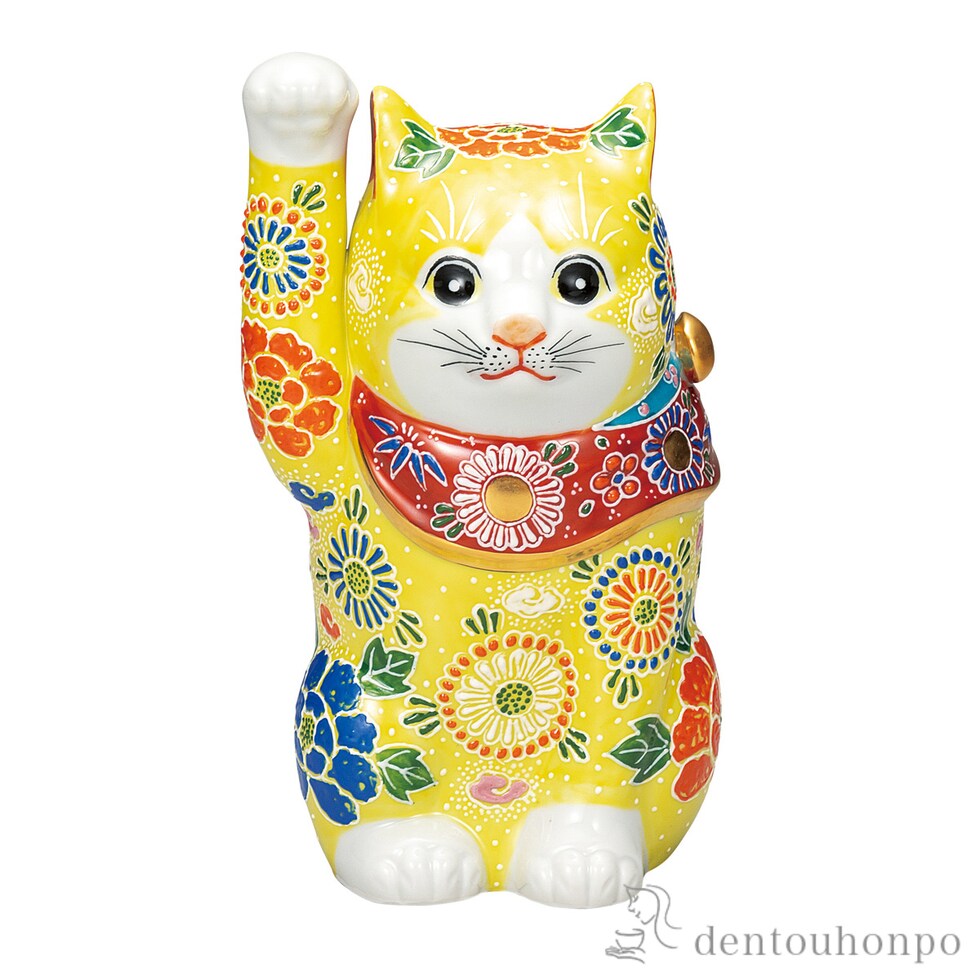 【九谷焼】 招き猫 黄盛 7号