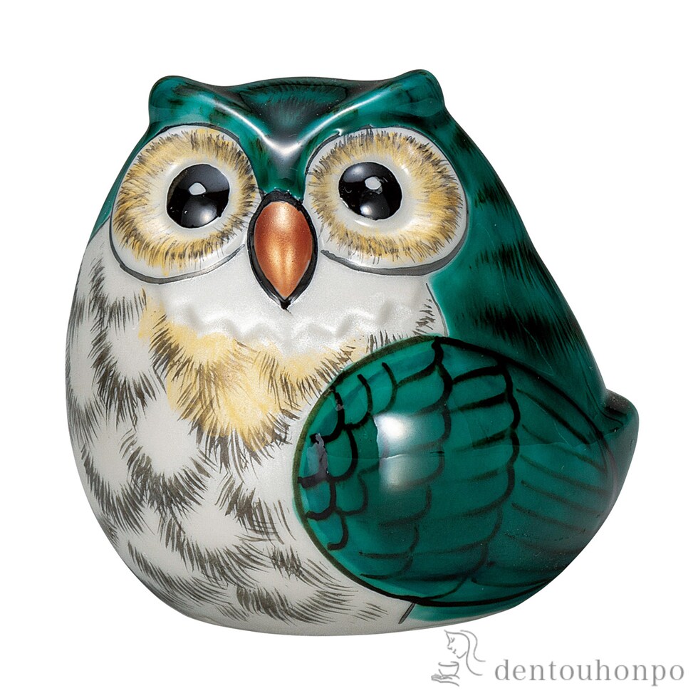 横向きふくろう 緑釉彩 3号 ( 置物 幸運 開運 まねきねこ 風水 九谷焼 結婚 出産 内祝い 引き出物 金婚式 誕生日プレゼント 還暦祝い 古希 喜寿 米寿 退職 )