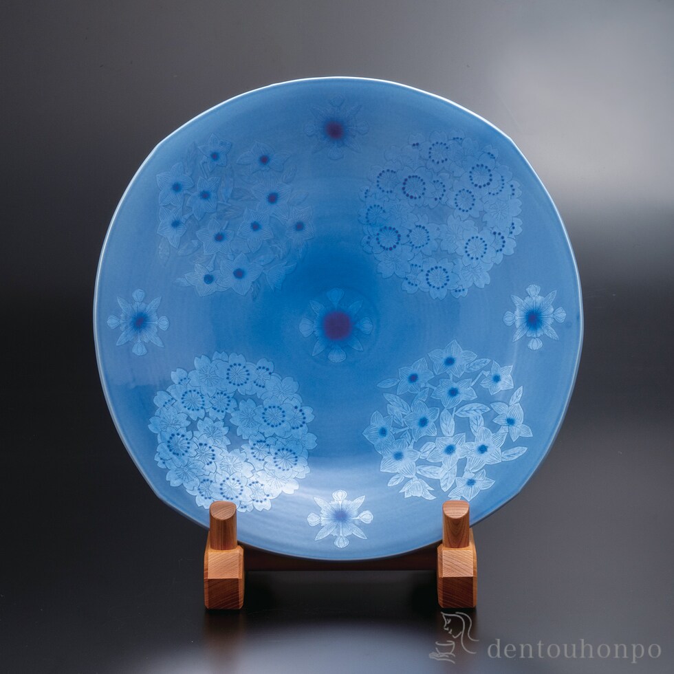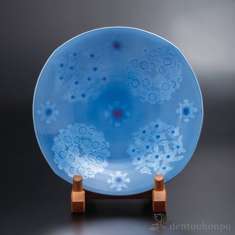 卓越した技と美が織りなす九谷焼の芸術作品。淡青釉に浮かぶ銀彩花文は、和の心を宿した優雅な美しさを漂わせます。四方飾皿が持つ静かで深遠な魅力は、日常に特別なひとときを与えてくれることでしょう。皿立付きでお部屋を彩り、洗練された空間を演出します。美術品として時と共に価値を深める一品をどうぞ。