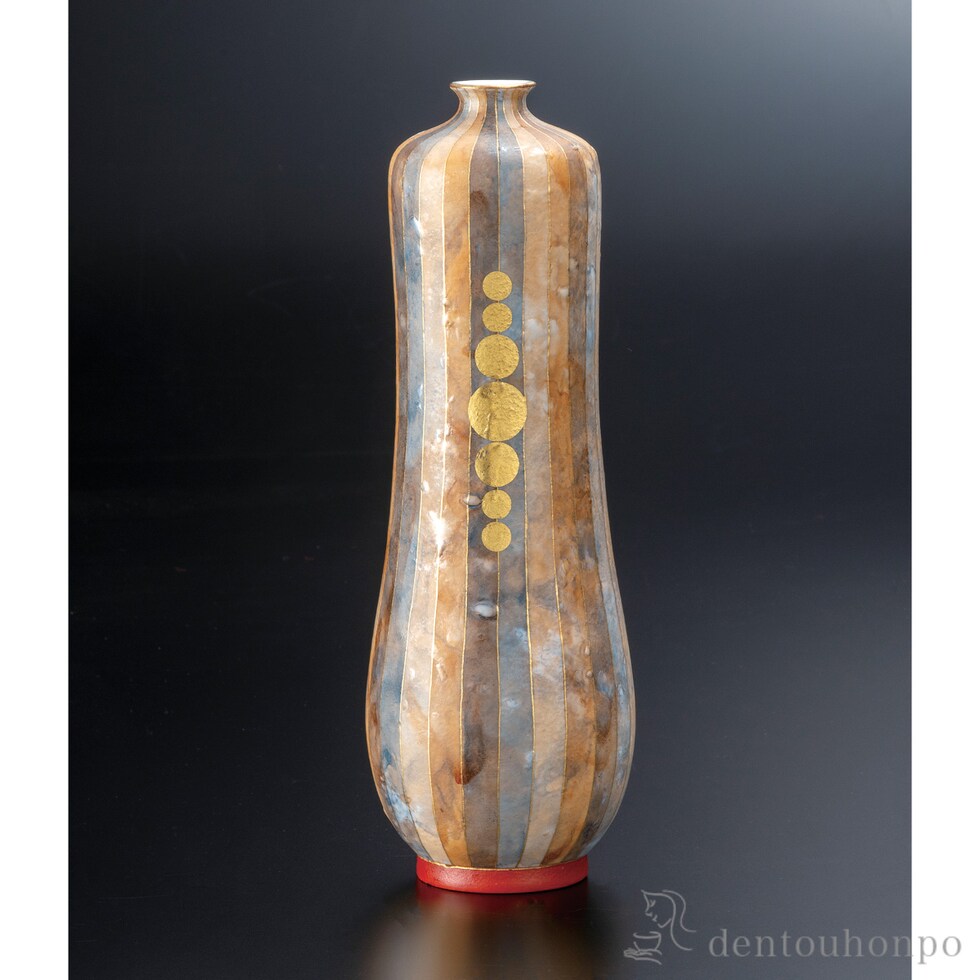 【九谷焼】 花生 金襴手彩色 9号