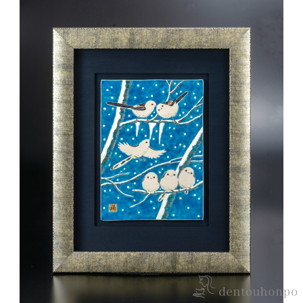 陶額 彫釉彩シマエナガ文 ( 置物 額飾り 陶板 陶板画 法人 九谷焼 周年 創立 上場 竣工 開店 事務所移転 開業 プレゼント お祝い お返し お礼 令和 海外 )