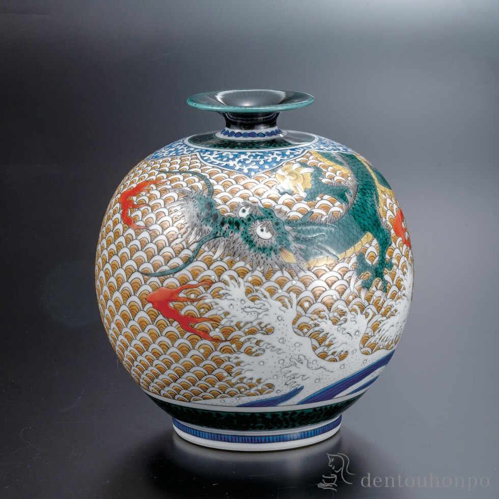花瓶 青手龍神 7.2号 ( 木札名入れ有料 ガラス フラワーベース 花器 一輪挿し おすすめ 九谷焼 周年 創立 上場 竣工 開店 事務所移転 開業 プレゼント )