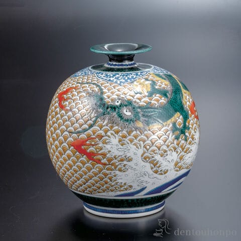 青手龍神の美が、空間に格調を添えます。熟練の技が光る九谷焼は、龍の迫力を見事に表現し、見る者を魅了します。花瓶としての実用性と美術品としての存在感は、特別な場所にふさわしい輝きを放ちます。上質な贈り物として、受け取る人の心を豊かにすることでしょう。