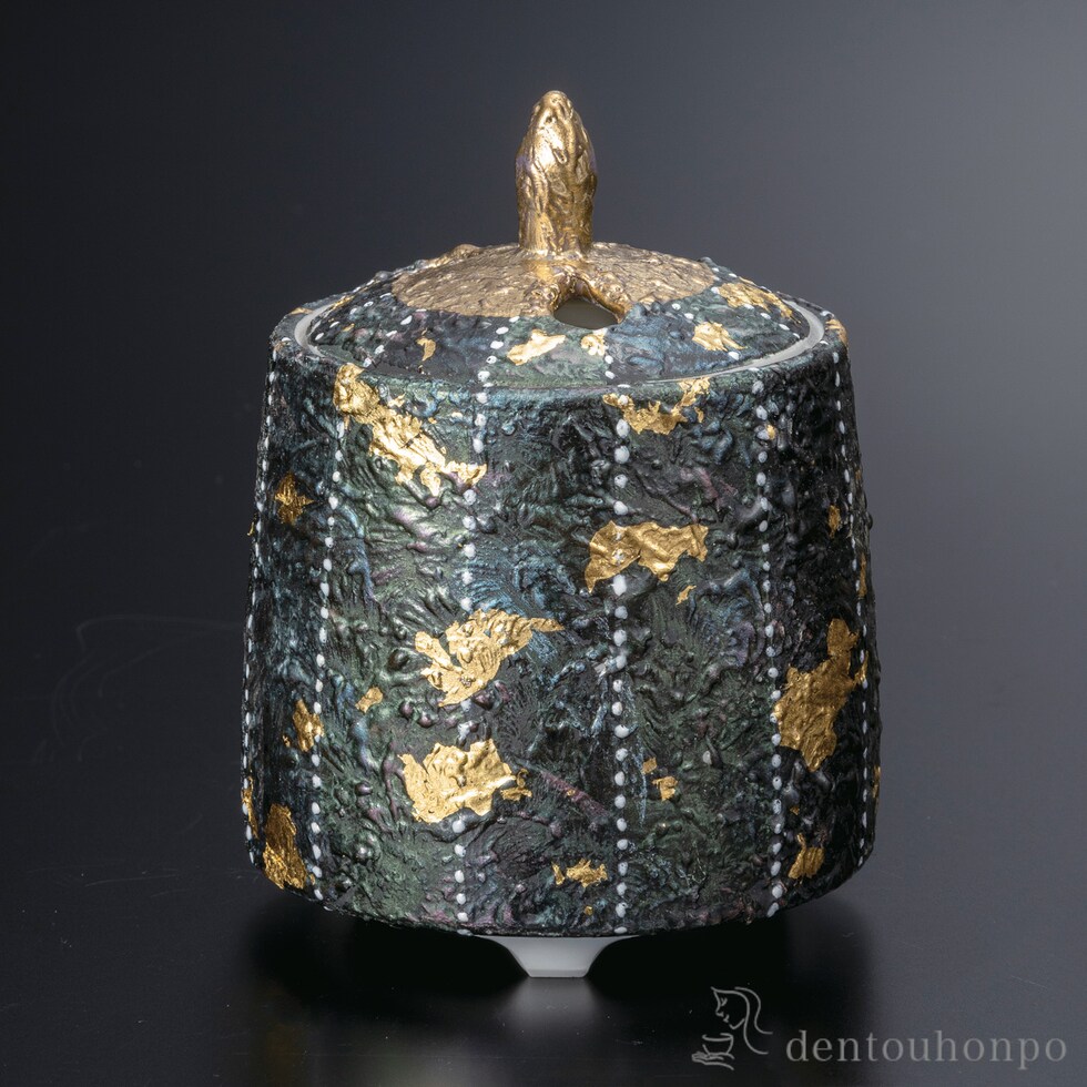 深い緑の中に金彩が映える高級感あふれる香炉。九谷焼の技が光る一品で、空間に気品と落ち着きを添えます。香りを楽しむ時間が、一層贅沢なひとときに。伝統とモダンが融合した美しさを、あなたの暮らしに。