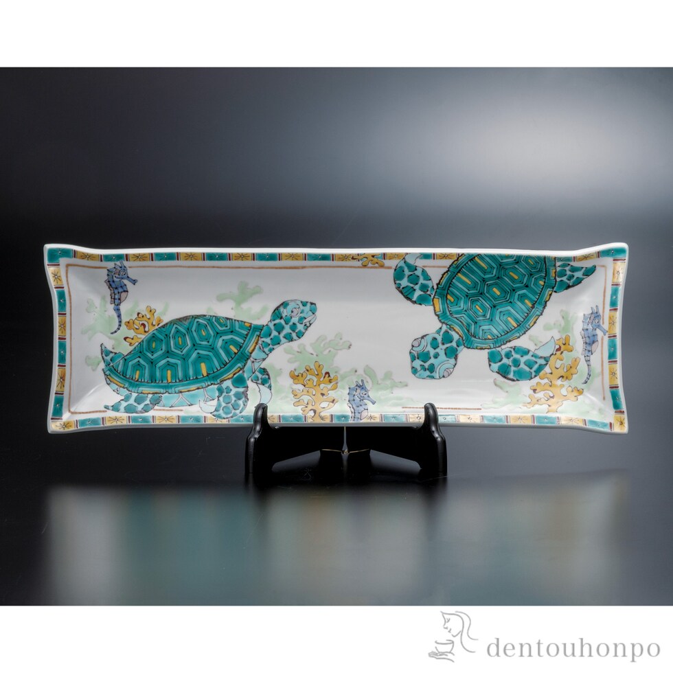飾皿 海亀の図 15号 皿立付 ( 置物 飾皿 スタンド 絵皿 贈り物 九谷焼 結婚 出産 内祝い 引き出物 金婚式 誕生日プレゼント 還暦祝い 古希 喜寿 米寿 退職 )